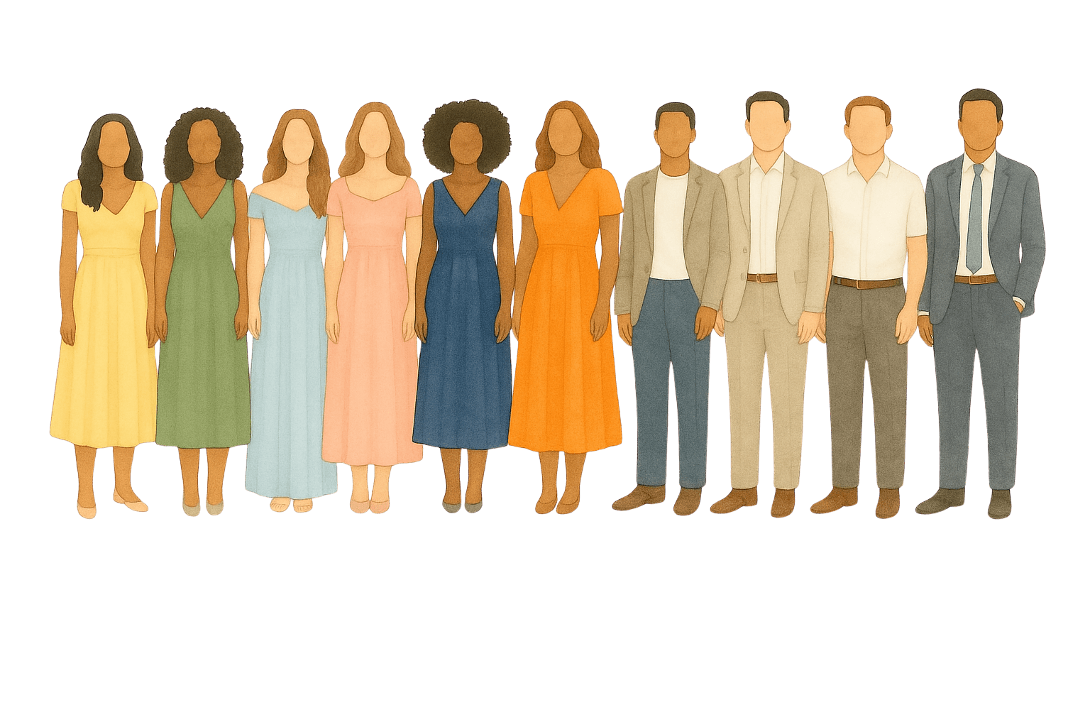 Para eles, camisa ou camiseta com calça social, podendo incluir blazer com ou sem gravata.